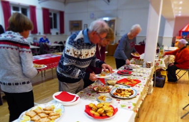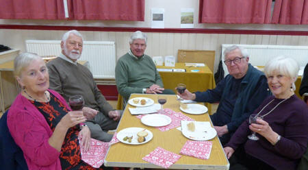 A good number of members braved the cold to enjoy an excelent evening. There were competitions for the best handmade Christmas card, best holiday painting and best shadow themed photograph. The games were desighed to stretch the braincells ; identify, the famous painting, unusual photo and object. There was a magnificent spread of food brought by members with wine and drinks to wash it down. This year the food was in the main hall which worked well by keeping the party contained. The raffle prizes were presented by our Patron, Paddy Holmes.
