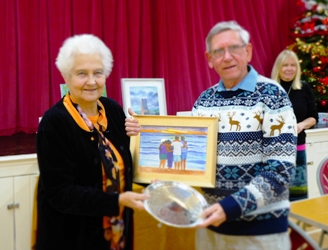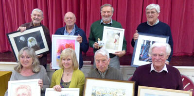 The evening party was as good as ever and everyone enjoyed it, but unfortunately, a number of members were not well or put off by the poor weather. Members brought lots of food and Jan Croker had arranged plenty of drink. We had a variety of games and quizzes, organised by member's husband, Andy Williams, and up to the usual high standard. Paddy Holmes, our Patron, presented the prizes for Original Christmas Card - Pauline Davis, Holiday Painting - John Davis and Photograph of a Door - Barbara Wood. There were lots of fab prizes for the raffle.