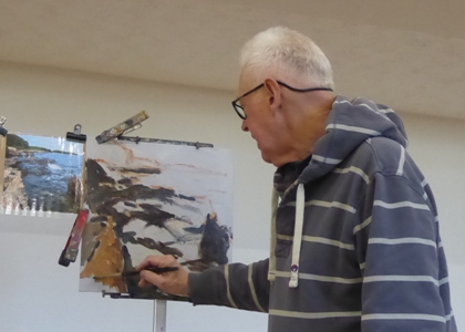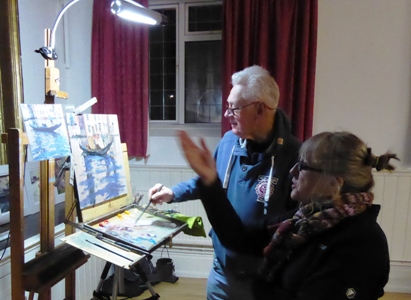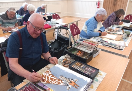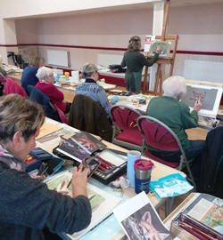 4th February Member, David Collier, assisted members to create a picture of water. Members brought their own photo to work from and David circulated giving advice, ideas and encouragement. David is one of our longest standing and most exprienced members.