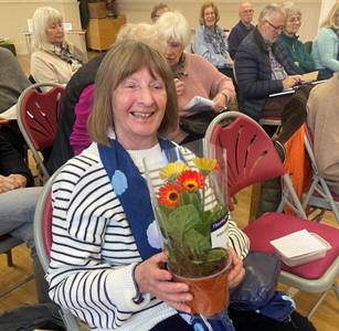 The Christmas Party was well attended by members and friends. Food and drink was provided and rapidly consumed. Some members entered the original Christmas card, summer flower photo and holiday painting competitions. Paddy Holmes, our Patron, presented the prizes to the three winners. The raffle was popular and made some money for the society funds. There were also fun competitioms for everyone to join in.