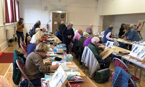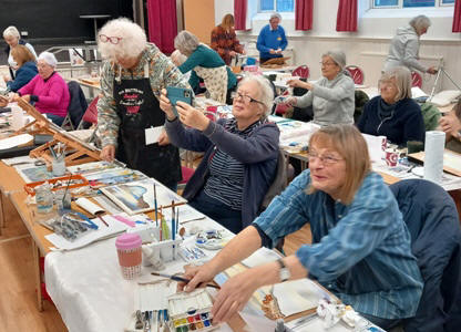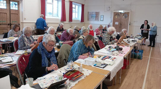 This year's exhibition was yet another great success due to the collaboration with the RC WI. We had over 400 visitors who viewed nearly 150 paintings and folios (unframed). 22 paintings were sold and cards were as popular as ever. The tombola raised nearly £200 (a record). All the hard work by helpers and stewards made it a really enjoyable event.