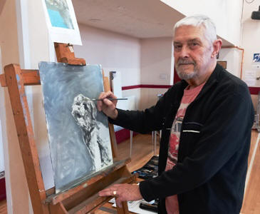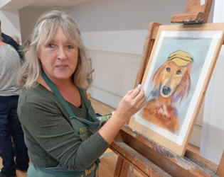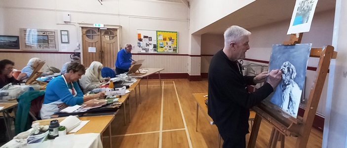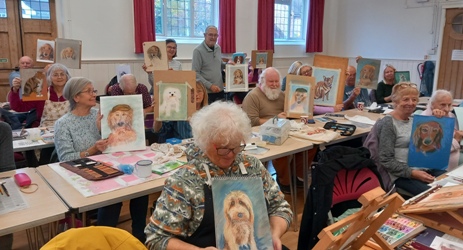 14th March 2023 - Members Workshop by Bob Payne Bob led us through the painting of a dog in acrylic. He supplied photos of his dog Poppy and some members brought their own favourite photos to work from. Most members ended with a nearly finished painting and a lot of new knowledge of acrylic technique.