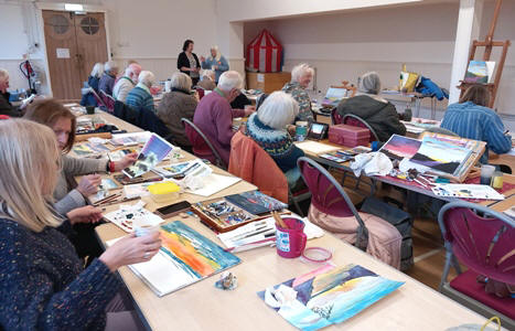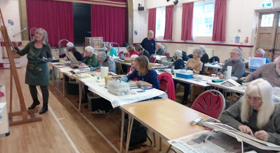 24thJanuary 2023 Sharon Hurst led a professional workshop. There was a usual high number of members present, who were introduced to new interesting watercolour techniques.