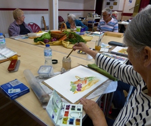 May 14th The last workshop of the winter session was run by our retired chairman Barbara Wood. She invited members to design a pub sign following the ideas and tips that she gave. It was a good way for members to finish the session with a relaxed and friendly fun afternoon.