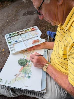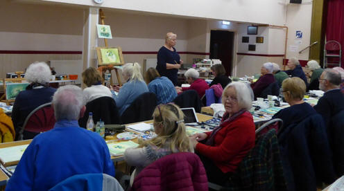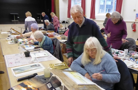 February 6th Members workshop by Steve Driver. Steve led a workshop on drawing and painting buildings, He explained about sketching, colour choice, detailing and other aspects. There was a good attendance as usual for workshops.