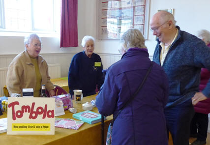 Shown below are Edward Girard winner of the 'Best in Show' award, Barbara and Terry on the Tombola, stewards Gill, Sandra and Sally, Martin Gebbett the exhibition organiser and finally the brilliant WI Fair in the small hall serving high class teas and cakes and selling Christmas gifts.