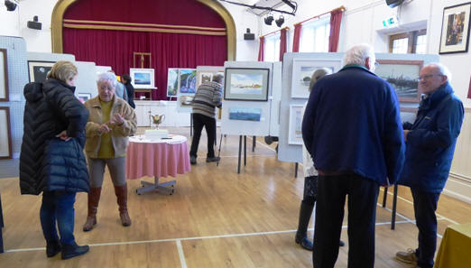 Our Exhibition 16th and 17th November There was a great display of varied and high quality paintings which were enjoyed by visitors and members. The convivial atmosphere was maintained from previous years. The number of paintings submitted was down on the last couple of years and sales were also slightly down. Footfall was near to previous years aided by good weather. The experience was greatly aided by the collaboration with Rowlands Castle WI Winter Fair who offered refreshment and sales in the small hall. Gary Miller was voted 'Best in Show' by visitors and was presented with the new cup.
