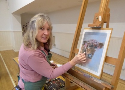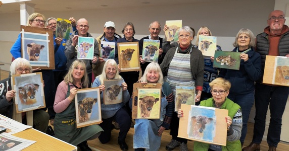 7th January The new year started with a pastel workshop led by our secretary, Yvonne Bromley. She started with an explanation of pastel techniques and materials, then led us through a pastel painting of a calf. Everyone enjoyed it as you can seen from the photos below.