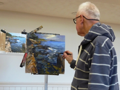 18th March Roger Dellar visited us again, this time to demonstrate painting a seascape in acrylic. As usual he took us through all the stages of painting with a continuous commentary on everything he was doing. Roger is not only a marvelous artist, he is also a great entertainer who kept us enthralled for the whole afternoon.