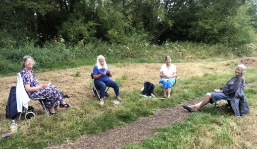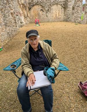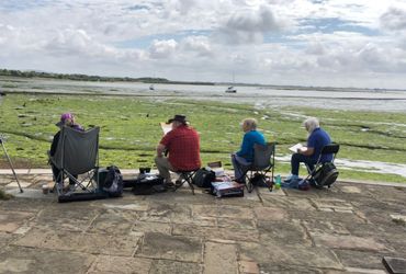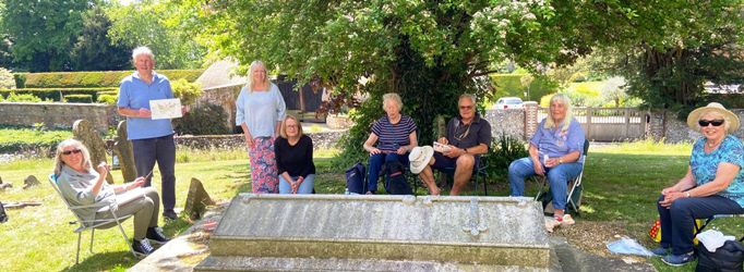 20th May Outdoor painting started again with a visit to East Meon. Below L to R Yvonne Bromley, Steve Driver, Sandra Ellis, Mary Klerk, Sally Williams, Andy Williams, Gill Merrett and Penny.