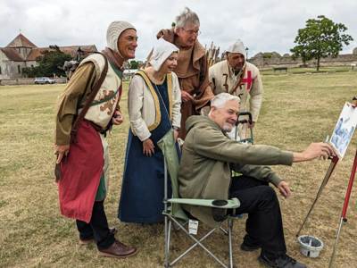14th October The new session welcomed back Roger Dellar (virtually an annual event). This time he entertained us with a portrait painting in watercolour, not his usual chosen medium. Charles Howard dressed up for the sitting (the beard is his), Roger has the ability to talk us through every paint stroke and colour choice as he magics a masterpiece before our eyes.